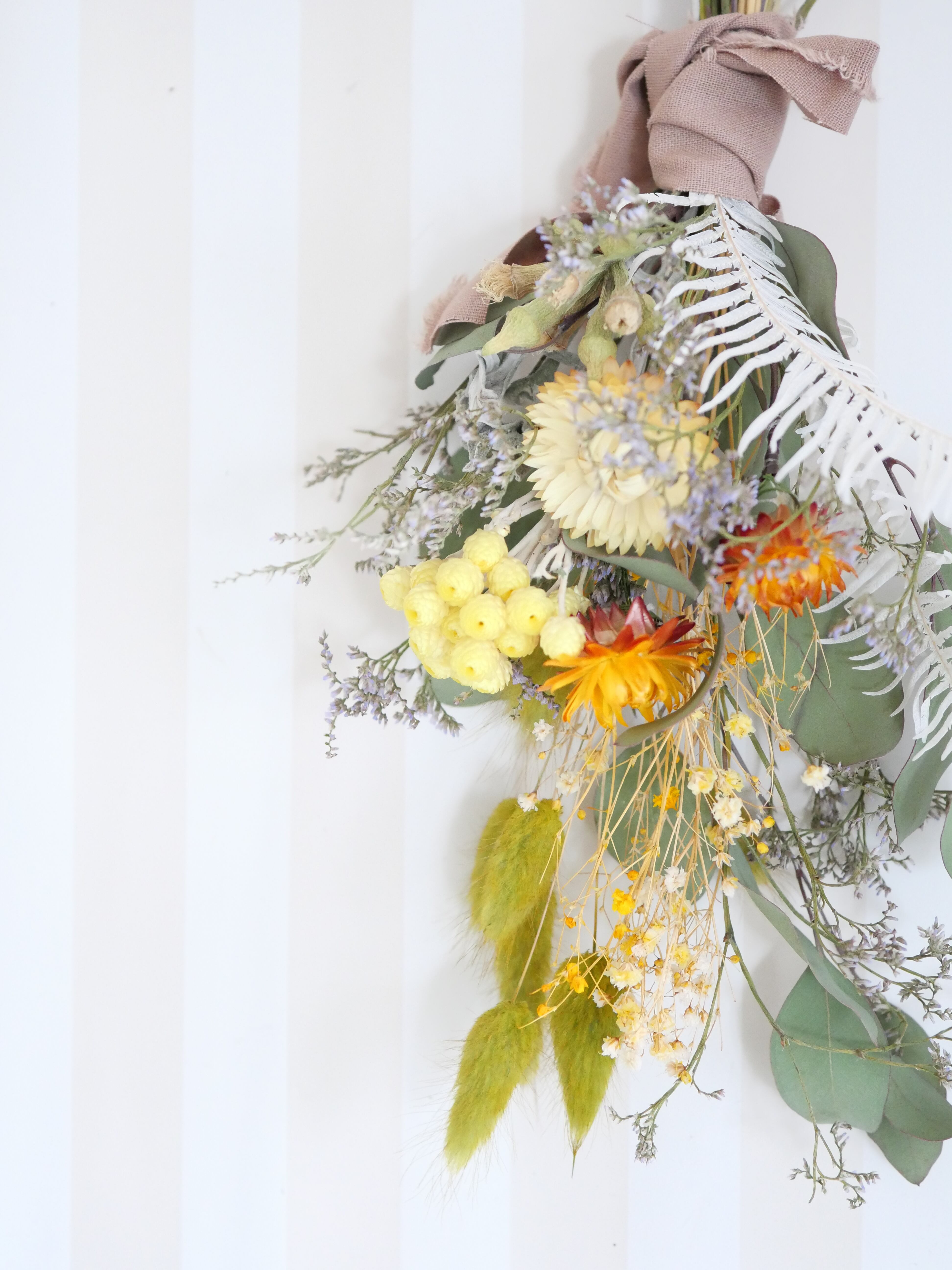花束は、そのまま花瓶に飾っても、スワッグとして吊るしても素敵です。