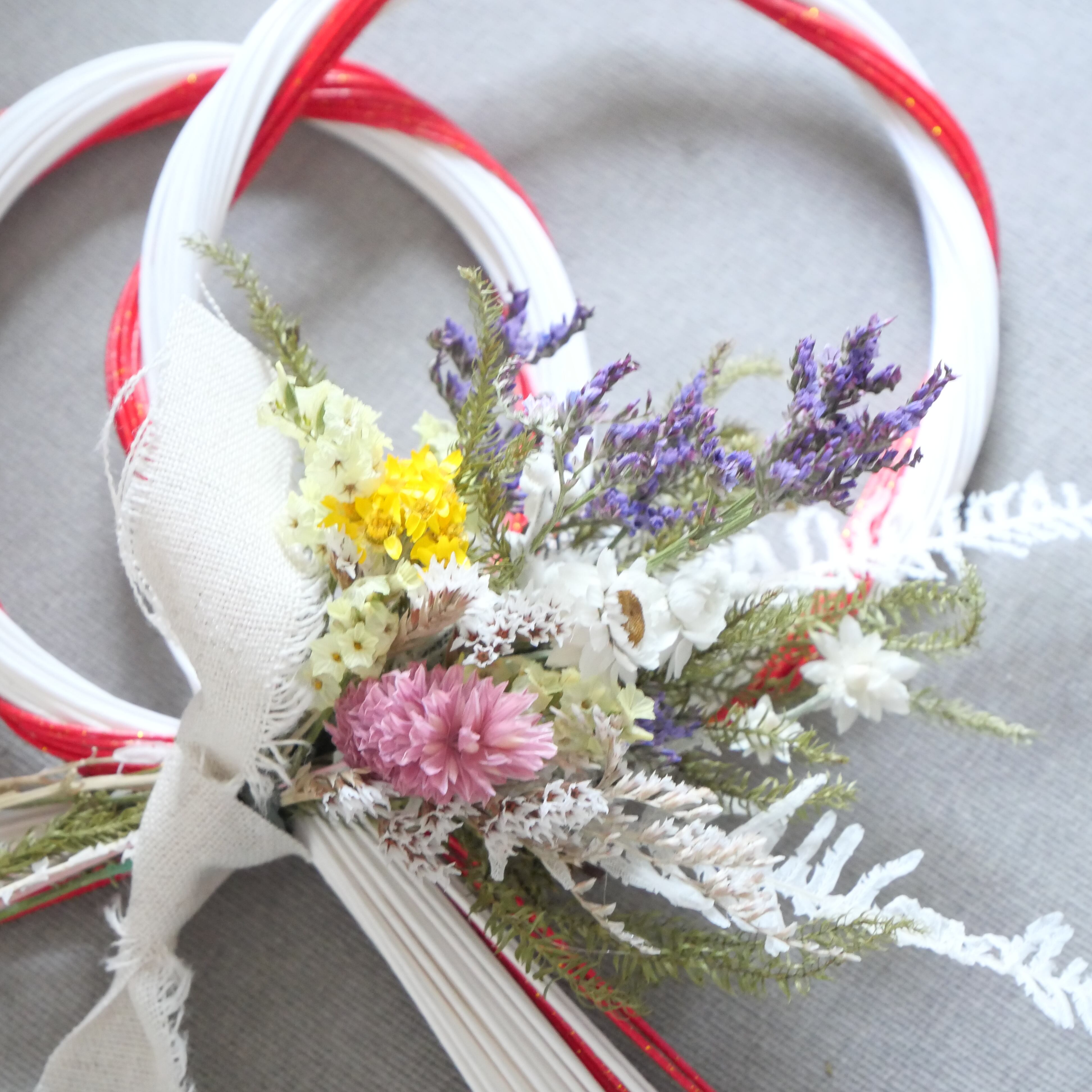 NEW お正月水引き飾りお花部分取り外し可 2way ドライフラワーミニスワッグタイプ 【数量限定商品‼︎】